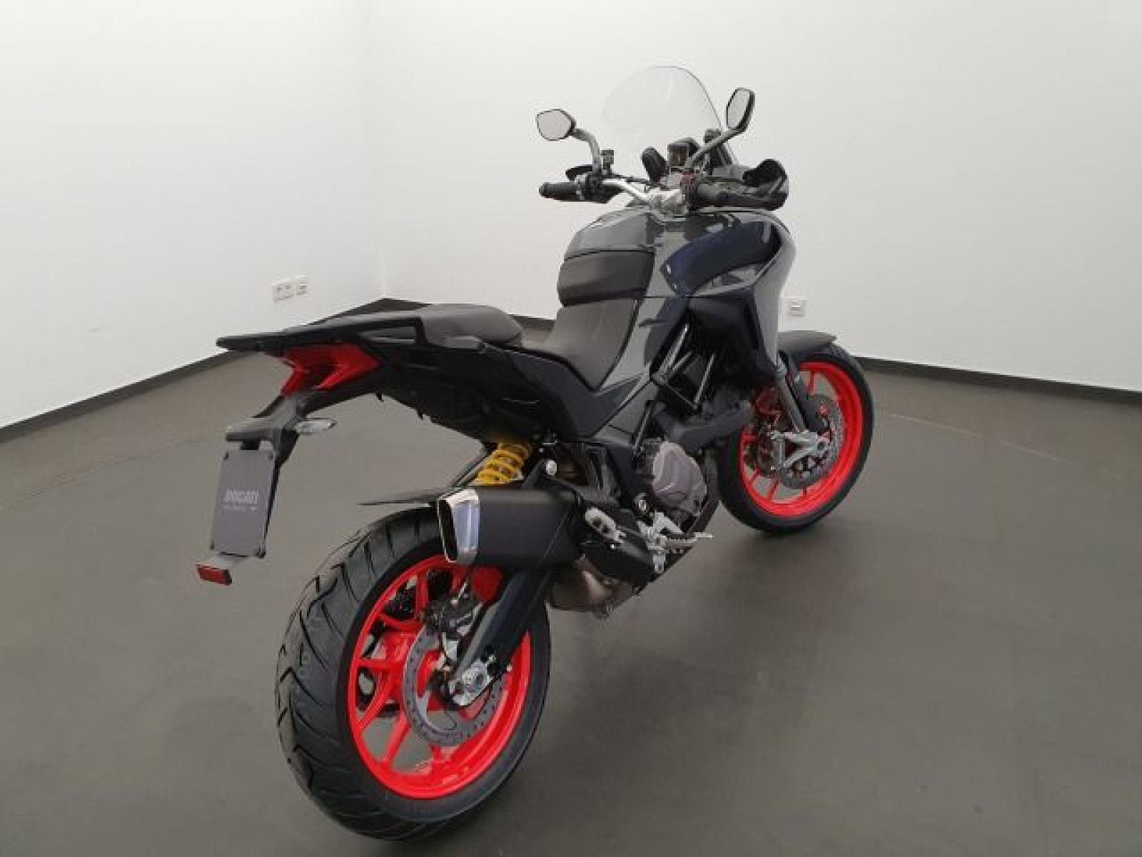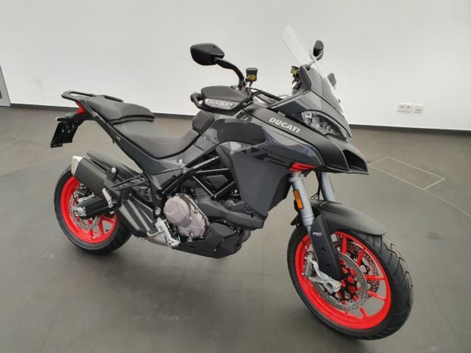 * Motortyp Testastretta 11°: flüssigkeitsgekühlter Zweizylinder in L-Form, 4 Ventile pro Zylinder, desmodromisch gesteuert Hubraum 937 cm³ Leistung 113 PS (83 kW) bei 9.000 U/min Drehmoment 94 Nm bei 6.750 U/min Getriebe 6-Gang-Getriebe mit Ducati Quick Shift (DQS) Up / Down Kupplung Hydraulisch betätigte Mehrscheiben-Ölbadkupplung mit Anti-Hopping-Funktion und Servo- Unterstützung Rahmen Stahl-Gitterrohrrahmen Vorderradfederung Voll einstellbare Upside-Down-Gabel mit Ø 48 mm Standrohrdurchmesser, elektrische Druck- und Zugstufendämpfung mit Ducati Skyhook Suspension (DSS) EVO Vorderradbereifung Pirelli Scorpion Trail II 120/70 ZR19 Hinterradfederung Progressiv angelenktes, voll einstellbares Federbein, elektronische Einstellung der Federvorspannung mit Ducati Skyhook Suspension (DSS) EVO, Aluminium-Zweiarmschwinge Hinterradbereifung Pirelli Scorpion Trail II 170/60 ZR17 Bremse vorn 2 x Ø 320 mm halbschwimmend gelagerte Bremsscheiben, radial verschraubte Brembo Monoblock 4- Kolben Bremszangen, radialer Hauptbremszylinder, Kurven-ABS Bremse hinten Ø 265 mm Bremsscheibe, Brembo 2-Kolben-Schwimmsattel, Kurven-ABS Trockengewicht 202 kg Gewicht fahrfertig 225 kg Sitzhöhe 830 mm 850 mm mit hoher Sitzbank 810 mm mit niedriger Sitzbank 790 mm mit niedriger Sitzbank und Tieferlegungssatz Tankinhalt 20 l Serienausstattung Riding Modes, Power Modes, Kurven-ABS, Ducati Traction Control (DTC), Vehicle Hold Control (VHC), Voll-LED-Scheinwerfer mit Daytime Running Light (DRL), Ducati Cornering Lights (DCL), Ducati Brake Light (DBL), elektrische Druck- und Zugstufendämpfung mit Ducati Skyhook Suspension (DSS) EVO, Ducati Quick Shift (DQS) Up/Down, Tempomat, Hands-free, hintergrundbeleuchtete Lenkschalter, 5- Zoll-TFT-Farbdisplay, automatische Blinkerrückstellung Vorbereitet für Ducati Multimedia System (DMS), Anti-Diebstahl System, Reifendruckkontrolle Service 15.000 km / 12 Monate Kontrolle des Ventilspiels 30.000 km Garantie 48 Monate ohne Kilometerbegrenzung Emissionen und Verbrauch Standard Euro 5 - CO2-Emissionen 137 g/km - Verbrauch 5, 9 l/100 km